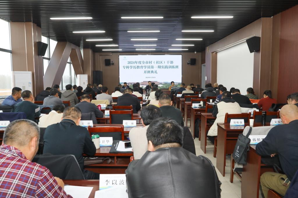 本站讯(通讯员 周伟伟)12月6日下午,由淄博市委组织部主办,淄博职业学院汽车工程学院承办的“2024年度全市村(社区)干部专科学历教育学员第一期实践训练班”在学院北区匠技楼506正式开班。来自我市淄川区、周村区、高青县和文昌湖区的72名学员参加开班仪式,学院党委委员、副院长张成山出席开班仪式并致辞。