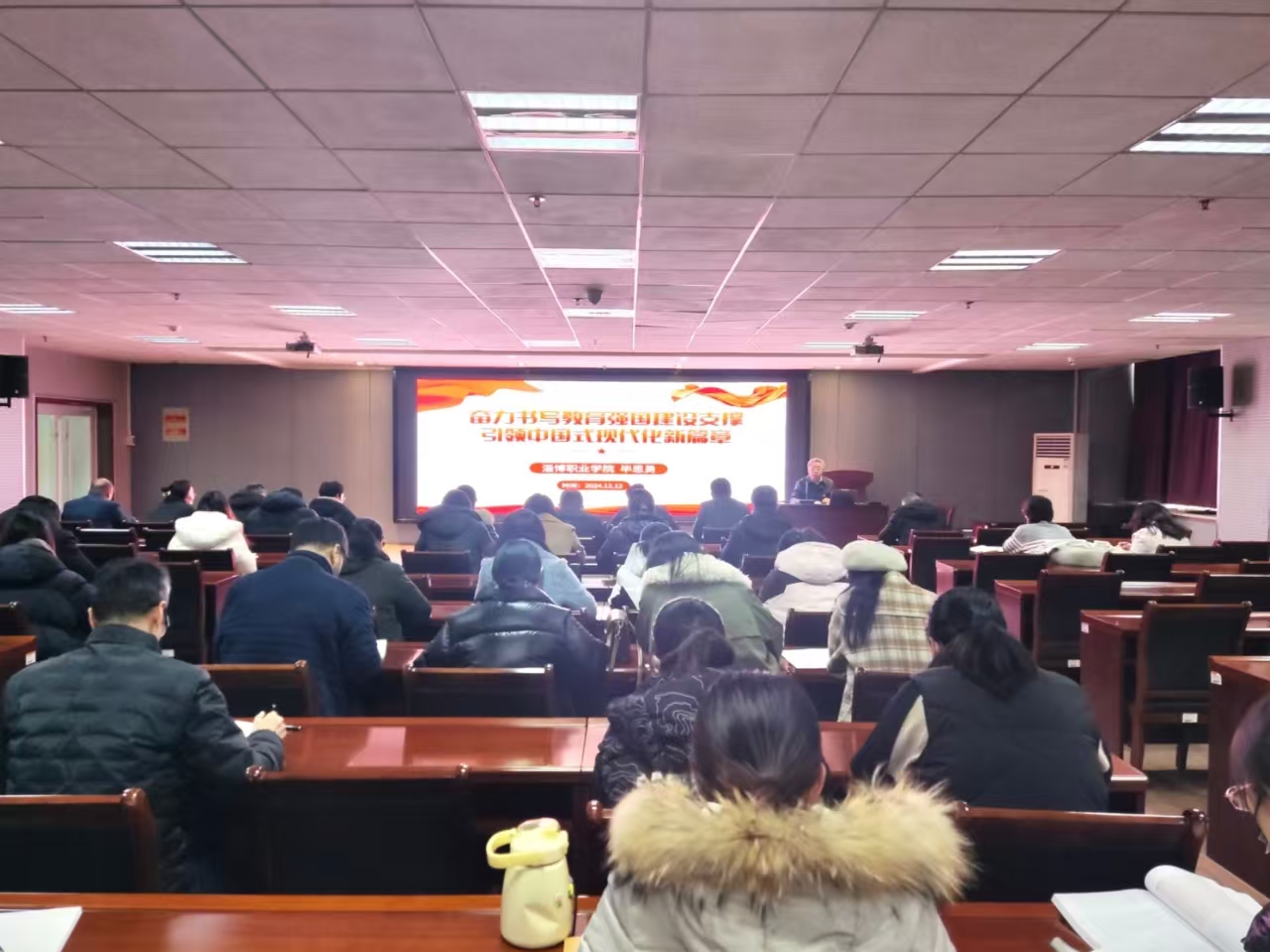 毕思勇以“奋力书写教育强国建设支撑引领中国式现代化新篇章”为题,从“深入学习贯彻习近平总书记关于教育的重要论述”“围绕推进中国式现代化这个最大的政治”“聚焦服务高质量发展这个新时代的硬道理”三个方面深入剖析,强调了教育在国家发展中的战略地位,指出教育强国是实现中国式现代化的重要支撑。他结合当前国内外教育形势,详细阐述了教育强国建设的紧迫性和重要性,并分享了学院在推动教育高质量发展方面的实践和探索。