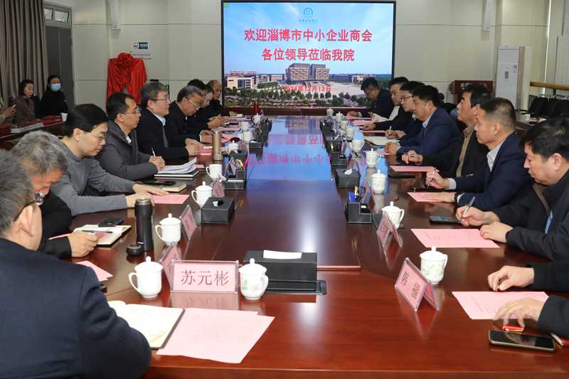 本站讯(通讯员 盛鑫甜)12月13日下午,淄博市中小企业商会会长张良金,党支部书记叶勇,党务副会长及教育培训专委会主任李传柱一行21人到淄博职业学院,就产教融合、实习实训等议题开展座谈交流,并签订战略合作协议。学院党委副书记、院长孙启友,淄博市职业教育研究院产教融合研究科科长田明,以及校企合作与就业指导中心、电子电气工程学院、建筑工程学院、工商管理学院、文化旅游系、护理学院、动漫艺术系、国际学院等相关负责人出席会议,活动由学院党委委员、副院长毕思勇主持。