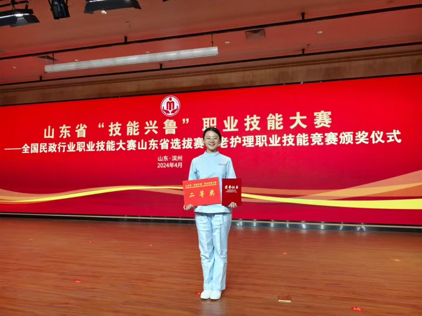 郑金月于2020年7月毕业于护理学院老年服务与管理专业(现更名为智慧健康养老服务与管理专业),现就职于山东颐养健康集团康养发展有限公司,担任淄博分公司居家服务部主任兼医护部副主任兼内训师。曾获评淄博职业学院优秀学生奖学金、山东省优秀养老护理员、桓台县岗位技术能手、桓台县最美青春养老人等,获山东省“技能兴鲁”职业技能大赛——第六届山东省家政行业职业技能竞赛“金牌服务员”、山东省“技能兴鲁”职业技能大赛——全国民政行业职业技能大赛山东省选拔赛二等奖、山东颐养健康集团康养发展有限公司“益寿光年杯”养老护理员技能大赛“一等奖”等。