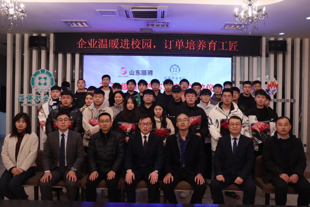 本站讯(通讯员 李凯)12月15日上午,汽车工程学院在尊客举办了“企业温暖进校园,订单培养育工匠”活动。山东顺骋汽车贸易有限公司的吴学涛总经理、陈元鹏总监及徐乐经理来到学校,为2020级“顺骋汽车班”学生发放价值三万元的冬季实训服,并与顺骋班师生进行了座谈交流。