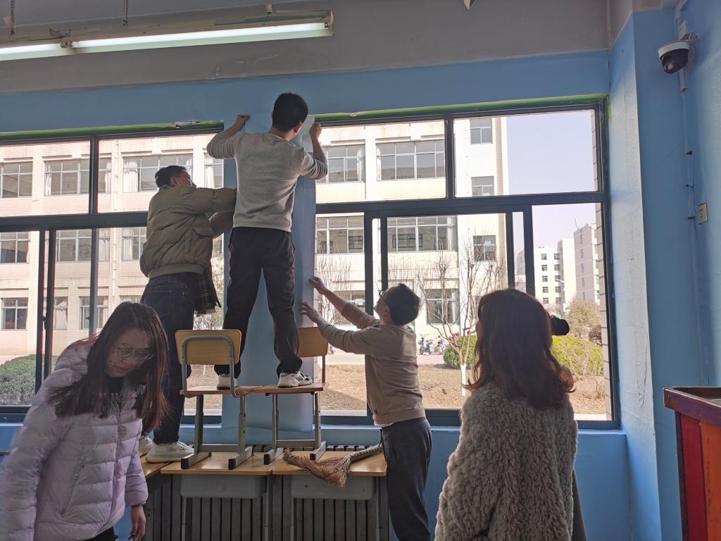 教师党员根据春考技能测试对考场的要求,与学生志愿者全力做好春考期间考区环境的保障工作,认真分工,精心布置。有的按要求摆放桌椅;有的清理墙面;有的打扫考场卫生。同时,学管老师进宿舍,慰问并了解学生志愿者情况,确保学生志愿者志愿服务顺利进行。