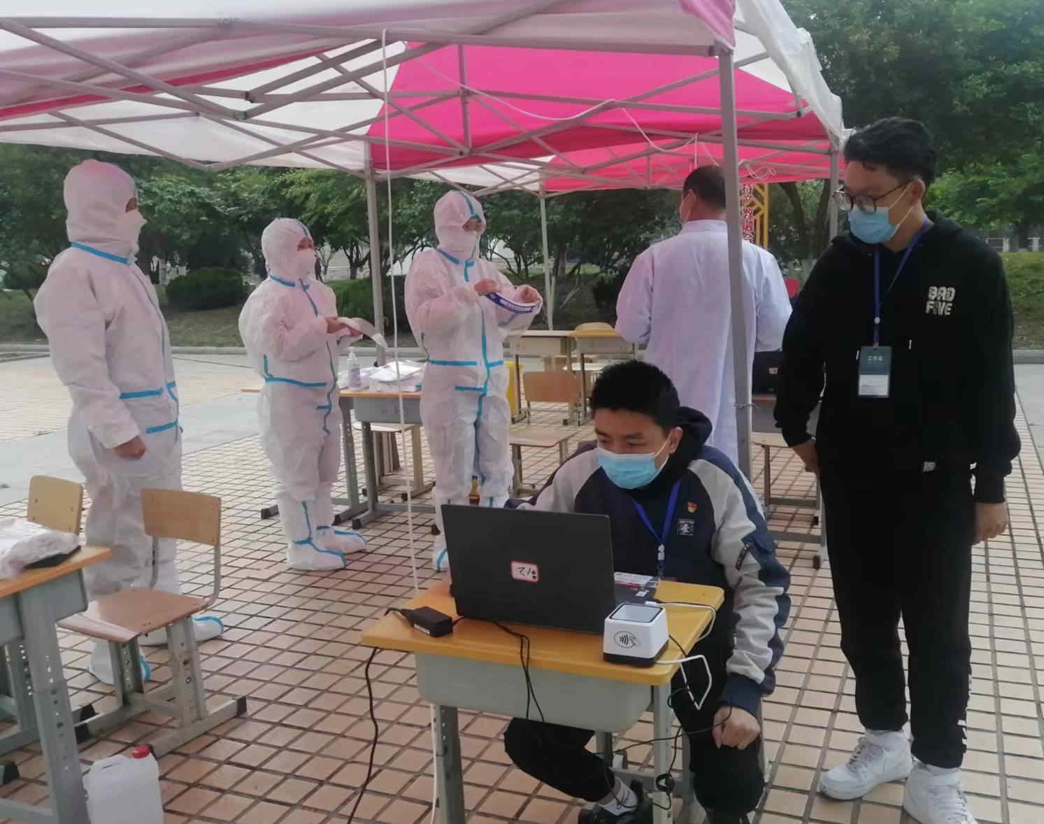 网络信息中心按照学校统一安排,以零失误的标准要求,调派技术骨干投入到这两场大型考试的保障工作。面对最危险最繁重的工作,党员干部冲在最前面,和老师同学们一道每天都提前1个多小时到达现场,检查相关网络设备,实时查看设备和系统的运行情况,及时解决遇到的各类问题。其中在5月6日,考虑到考生来自全国各地,无法确保考生们均能扫码健康淄博APP进行核酸检测,申搏专门协调来的新设备却出现无法被识别的问题,网络信息中心的老师带领网络空间和安全中心社团的同学们迎难而上,反复试验,到晚上九点半将十个智能扫码设备全部调试安装完毕,以实际行动践行了申搏“只有拼搏才是人生价值的最好体现”的校训精神。