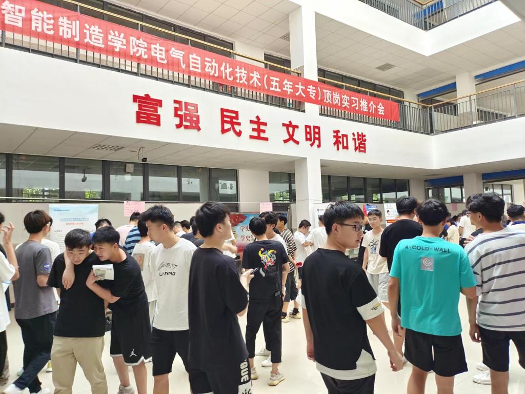 本站讯(通讯员 李福伟、赵鑫坤)6月7日,智能制造学院带领电气自动化(五年大专)200多名学生参加顶岗实习推介会,山东一诺威新材料有限公司、山东伟航敏芯电子科技有限公司等多家企业参加。