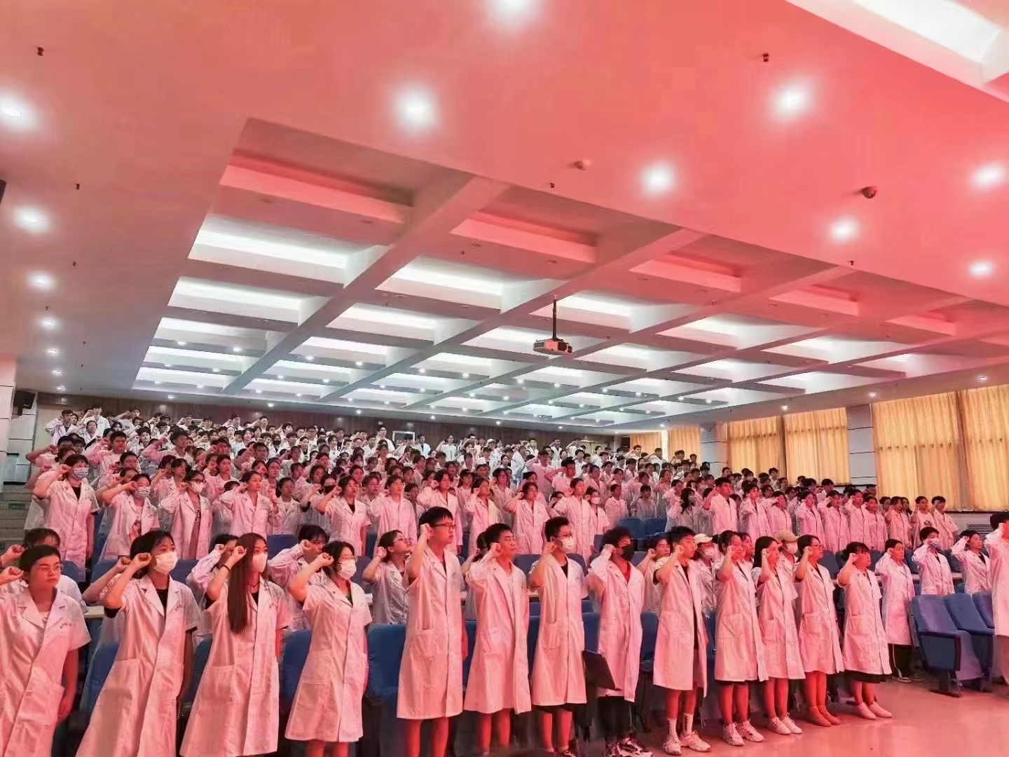 动员大会上,临床医学与康复治疗教育教学部副主任杜善梅博士、口腔医学教育教学部主任徐珊老师对实习学业进行了部署,并对实习教学的注意事项进行了强调;生产实训部丁运超老师就实习检查和日常实习管理的要求进行了说明,并对实习过程中常见问题做了解答;院系党总支副书记焦方芹老师对实习纪律和实习安全提出了具体要求;董同宝副院长带领全体实习生进行了医学生宣誓;张丽院长作了实习暨就业指导的动员讲话,强调了医学生临床实习的重要性。