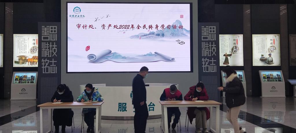 本站讯(通讯员 何琪、张芳)为深入学习宣传贯彻党的二十大精神,积极营造全民学习、终身学习的氛围,11月29日下午,审计处与资产处全体人员在北校区图书馆举办了以“勇担高校使命,促进终身教育”为主题的书法笔会活动。