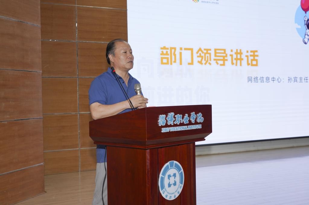学校网络信息中心孙宾主任参加本次大会并为学生团队管理组颁发工作证,其从自身经历和身边真实的案例出发,以热爱、奉献和学习三个角度对2022级新会员提出了更高的期待和要求,他还从社会行业数字化转型和人工智能赋能学校所有专业的角度号召同学们深度参与学校各个部门的信息化建设。