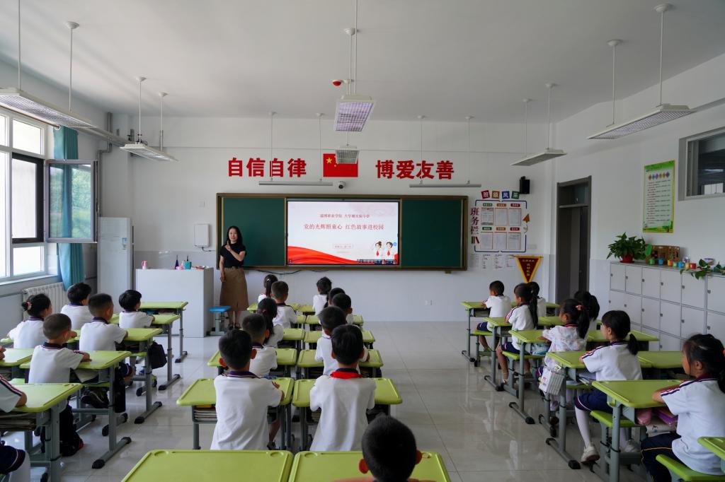 祖国的故事承载着红色历史,红色故事记载着历史的辉煌。教师们在不同班级用生动的语言、真切的情感演绎了《卖报歌》《王二小》《小萝卜头》《鸡毛信》《一双绣球草鞋》等经典抗日故事,一起缅怀红色历史,追忆峥嵘岁月。孩子们积极地进行互动交流,踊跃发言,表达自己的感受、感想,表示要珍惜今天的好时光,好好学习,报效祖国。实验小学校长魏建国表示,此次活动让孩子们了解中国革命史,感受到今日幸福生活来之不易,期望更多的大学教师能够走进小学,一起讲活思政课。