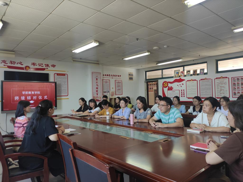 本站讯(通讯员 孙琦)为强化新进教师思想政治素质和师德师风建设,提高新进教师专业素质能力,9月7日下午,学前教育学院在南区尚德楼B702举办了隆重的师徒结对仪式,新进教师专业培养小组有关成员参加了本次活动。