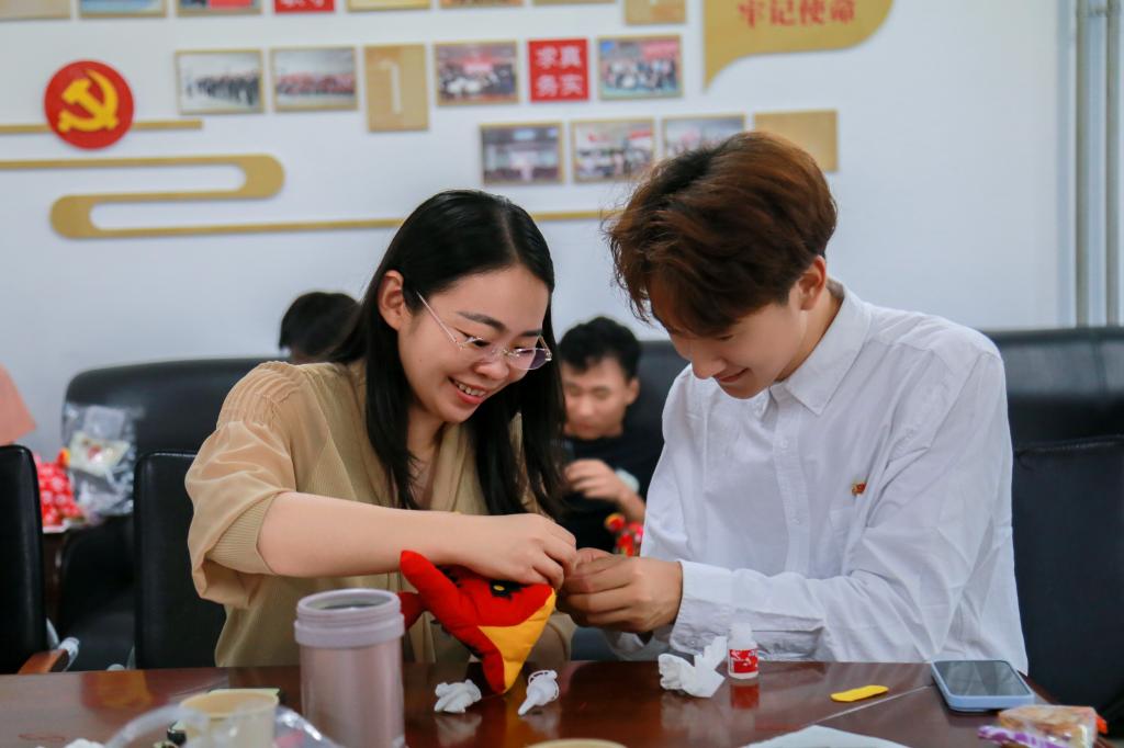 活动伊始,动漫艺术系分工会负责人对在场所有师生献上节日祝福,随即,活动正式开始。在我国源远流长的历史中,布老虎一直是平安吉祥的象征。在本系教师的带领下,参加活动的师生三两成群,一起缝制布老虎。五彩斑斓的布料,在一双双巧手的缝制下,逐渐变成一个个活灵活现、栩栩如生的“小老虎”。大家互相分享着自己的作品,一时间,活动现场欢笑连连。缝制结束后,老师与学生围坐在一起,彼此以诚相待,一边品味美食,一边分享学习、生活中的感受,传递爱与温暖。参加此次活动的学生代表多为2023级新生,面对崭新的学习、生活环境,他们表示一定要做好规划,在未来的三年时间里,努力提升自己,成长成才。