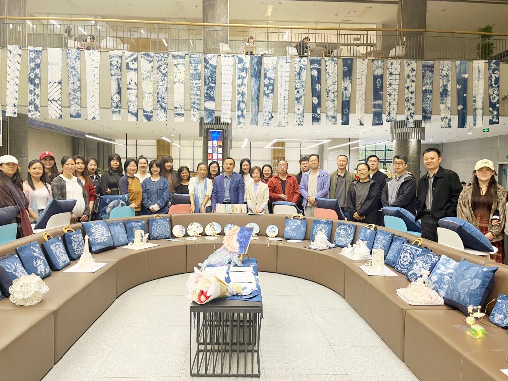 近几年,学校依托淄博地区北方丝绸的发源地的地域优势,开发淄博蓝印花布、现代绞撷技法、布老虎、掐丝珐琅画、锦灰堆、博山琉璃、淄博花灯等淄博当地非遗项目课程;并利用古法植物染色和丝绸的这个扎染工艺有效的结合,设计制作了许多优秀的文创产品,搭建鲁中地区非遗文创产品线上线下销售平台,通过销售平台激发文化设计创意活力,丰富非遗文创产品研发,促进非遗保护传承与文创产业协调发展。
