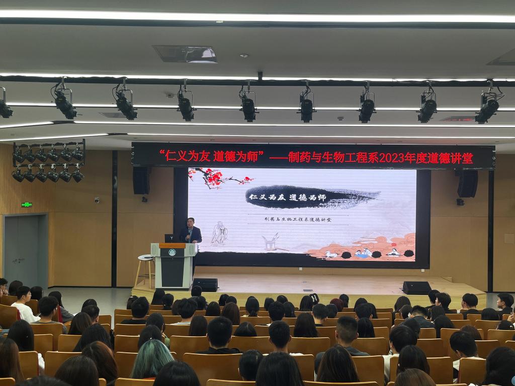 本站讯(通讯员 宋亚楠)为充分发掘中华优秀传统文化蕴涵的丰厚资源,扎实推进社会主义核心价值观体系建设,充分发挥模范的辐射带动作用,10月31日,制药与生物工程系在东校区报告厅开展“仁义为友,道德为师”道德讲堂活,制药与生物工程系全体教师、2023级全体学生共同参加。