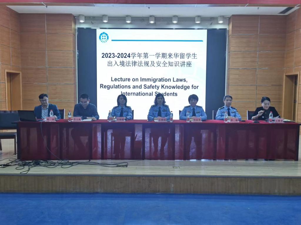 左雅娟就《中华人民共和国出入境管理法》中涉及外国人住宿管理、签证手续办理、护照和签证保管及报失、外国人工作与兼职、我国宗教政策等内容进行了详细解读,并对日常生活中的安全知识,诸如交通安全、防盗意识、电信诈骗等易发的问题和事故一一做了预防、应对和处置说明。北郊派出所警官李琳通过讲解发生在留学生身边的真实案例,对电信诈骗、打架斗殴等带来的危害进行生动说明。国际合作部教师对来华留学生宿舍管理、出勤管理、奖惩措施等进行了详细解读。