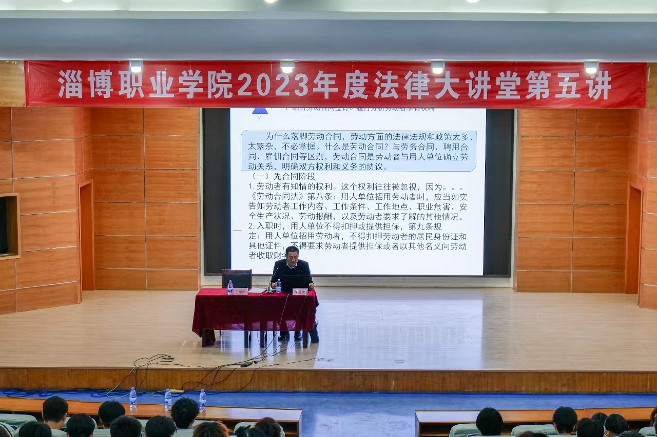 本站讯(通讯员 王翠萍)为进一步增强同学们的法律意识,规避就业合同中存在的法律风险,维护自身的就业权益,11月7日下午,人工智能与大数据学院在南区尚德楼报告厅成功举办了《大学生就业权益保护》法律大讲堂专题讲座。本次讲座邀请淄博市周村区劳动人事争议仲裁院院长、淄博市人民调解员协会理事 、公职律师 、劳动仲裁员李言波律师担任主讲嘉宾。