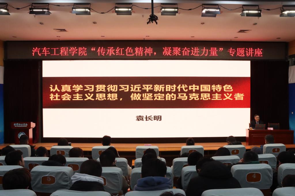 本站讯(通讯员 杨翎)12月22日,汽车工程学院在北区立德楼报告厅举办“传承红色精神,凝聚奋进力量”专题讲座。学校关工委副主任、“五老”红色宣讲团成员、淄博市委老干部局党的二十大精神宣讲员袁长明做专题报告。汽车工程学院全体党员教师、近三年新进教师、全体入党积极分子、2023级学生等500余人参加。活动由汽车工程学院党总支书记胡清水主持。
