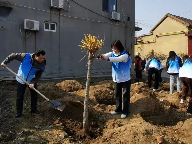 活动中,师生志愿者们分组行动,协助村内完成主干道、集中绿化区域的春季树木补植工作。栽种、培土、浇水各个环节一气呵成,一棵棵树苗在村民和师生的共同劳动中竖立起来,以实际行动齐心助力乡村生态文明建设。