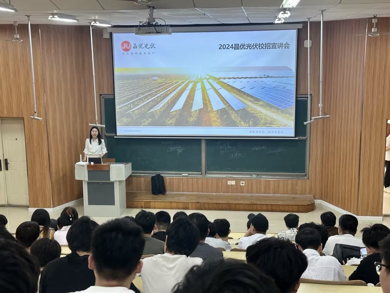 宣讲会上,晶优光伏集团淄博分公司人力资源部经理杨洁详细介绍了公司的基本情况、岗位要求,以及淄博光伏产业的广阔发展前景。同时,还向在座的学生们展示了公司的工作环境、薪资待遇以及清晰的职业发展路径,旨在激发学生们投身光伏产业的热情,鼓励他们通过实习和工作的方式,不断提升自身的技术能力和实践经验。