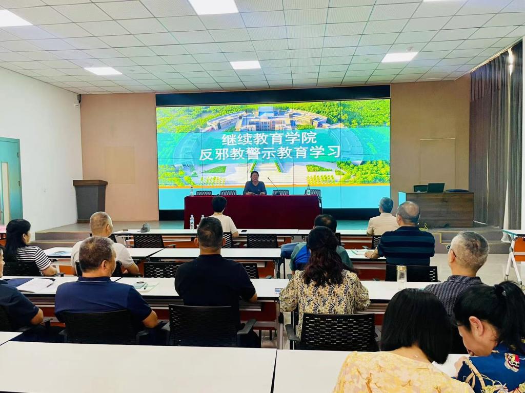 本站讯(通讯员 庞国龙)5月29日下午,继续教育学院全体教职工在南区建筑基地一楼会议室召开了反邪教警示教育学习会。