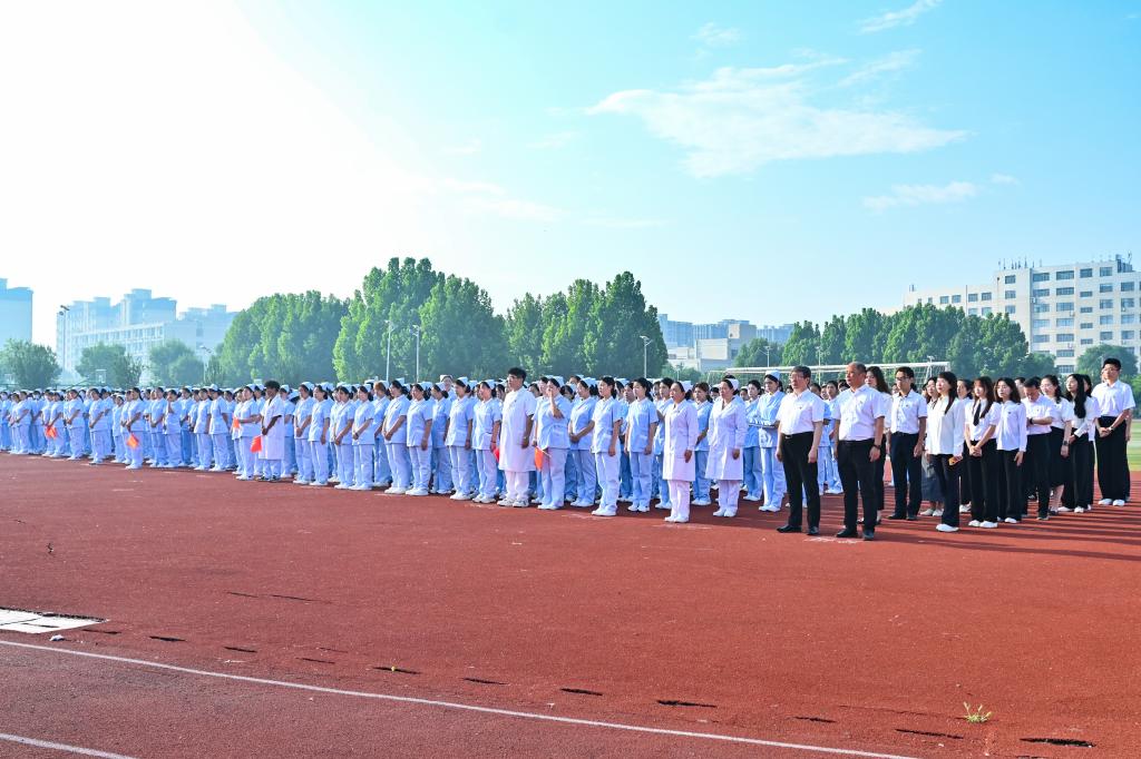 本站讯(通讯员 朱艳华)6月3日清晨,护理学院在西区操场举行“青春激扬爱国情 砥砺奋进新征程”升旗仪式。学院党委副书记、院长孙启友,护理学院科级以上干部、全体辅导员班主任、专业教师代表及2022级全体学生参加。