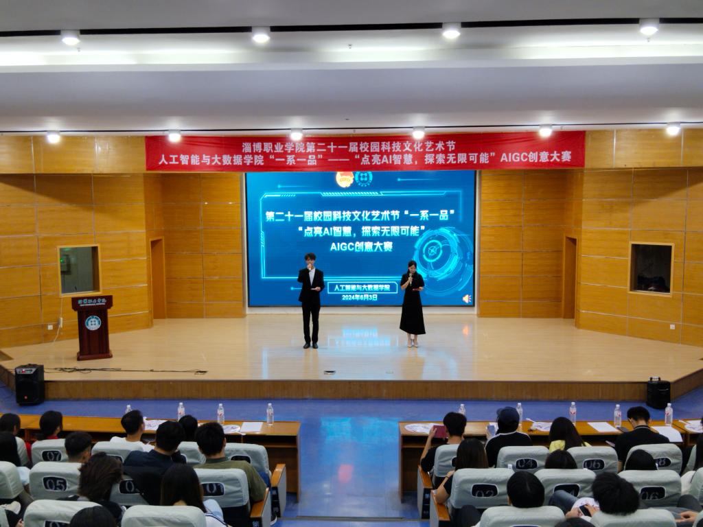 本站讯(通讯员 郑清璇)6月3日晚,人工智能与大数据学院团总支在南区报告厅开展了第二十一届校园科技文化艺术节“一系一品”系列活动之“点亮AI智慧,探索无限可能”AIGC创意大赛。人工智能与大数据学院教师代表、2023级全体学生共300余人参加。