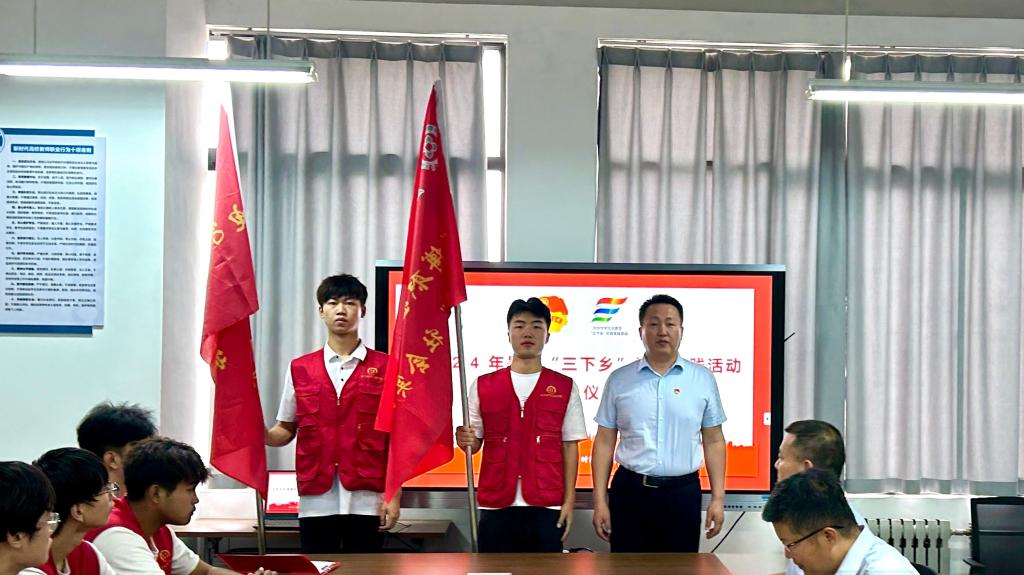 冯泽虎为该院重点团队授旗,激励青年学子积极投身暑期“三下乡”社会实践活动,争做有理想、敢担当、能吃苦、肯奋斗的新时代好青年。