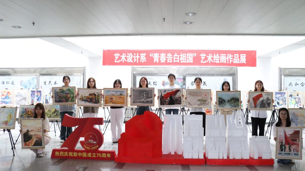 本站讯(通讯员 王春钥)9月29日,艺术设计系组织师生于南区尚德楼前大厅举办了“青春告白祖国”绘画艺术作品展。