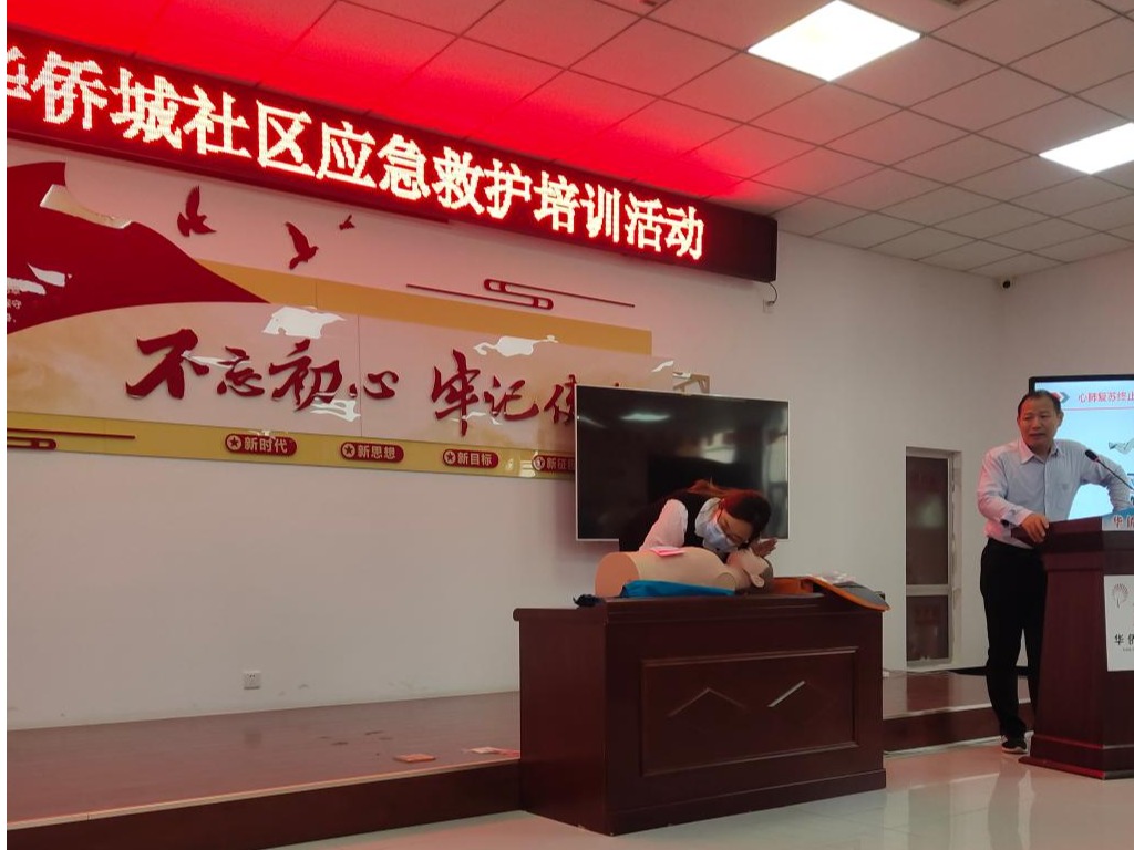 培训现场,医务人员采用“理论讲解+实操演示”相结合的方式,用通俗易懂的语言,深入浅出地向社区工作人员和居民讲解应急救护“黄金4分钟”、“心肺复苏”操作流程、自动体外除颤器(AED)使用方法及注意事项等理论知识。实操演示环节,医务人员从判断意识、呼救、胸外按压,到开放气道、人工呼吸、使用AED除颤治疗等,每一个步骤、每一个动作,手把手进行指导,并对现场人员提出的问题给予耐心解答和精准示范。
