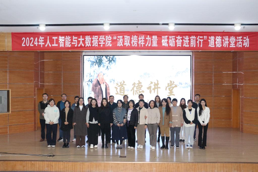 本站讯(通讯员 郑清璇)11月14日,人工智能与大数据学院于南区报告厅举办了“汲取榜样力量,砥砺奋进前行”道德讲堂活动,师生300余人参与了此次活动。