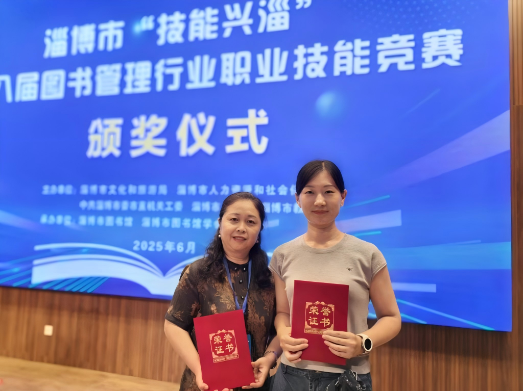 本站讯(通讯员 李晓亮 王静 摄影 李立)近日,淄博市“技能兴淄”第八届图书管理行业职业技能竞赛在淄博市图书馆成功举办。申搏图书馆员赵丽华、董畅组成的参赛团队荣获团体总分全市第三名,并摘得学校组第一名。