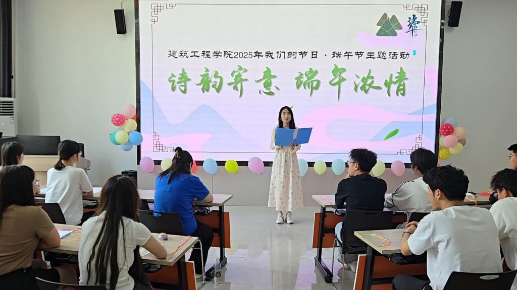 本站讯(通讯员 徐超群)5月27日,建筑工程学院在学校南区实训基地举办“诗韵寄意 端午浓情”诗歌咏诵活动,学生以经典诗文抒发爱国情怀,品读传统节日的文化底蕴。