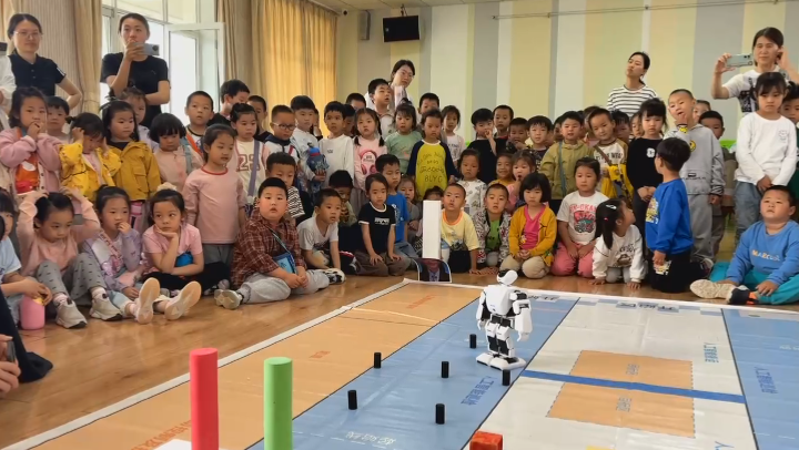 活动现场,师生志愿服务队为小朋友带来了“机器人献花”“人形机器人人工智能搬运”“机器人躲避障碍物”“机器狗舞蹈”等表演,孩子们被机器人强大的魅力所震撼。在志愿者团队的协助下,孩子们亲自体验了机器人手柄操作,在与AI机器人的智能交互中,对话未来,感受科技。