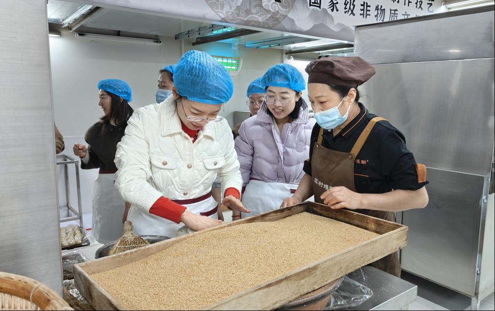 女职工们在参观周村烧饼博物馆时,了解了周村烧饼的历史文化、制作工艺和发展历程。在专业师傅的指导下,大家亲手体验了做饼、撒芝麻及烤制等工序,制作出独具特色的周村烧饼。