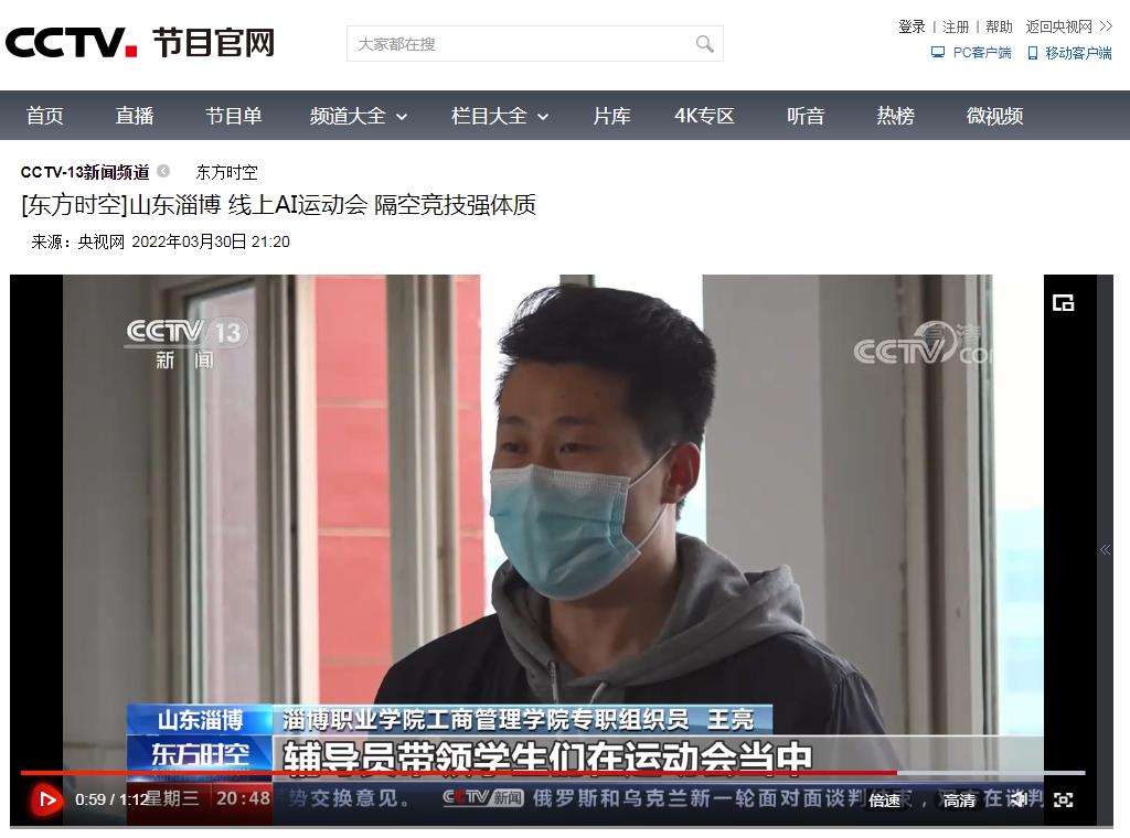 中央电视台-2022年3月月30日-cctv13新闻频道 山东淄博《东方时空》线上AI运动会 隔空竞技强体质