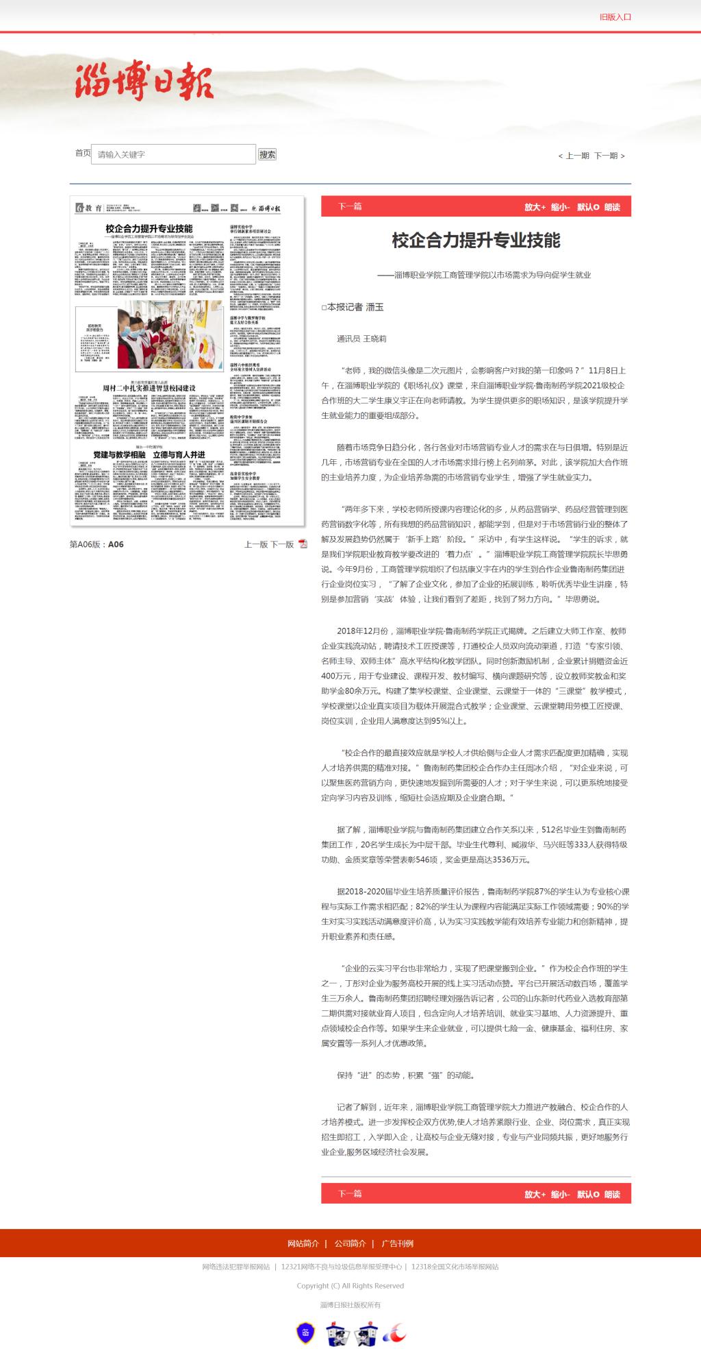 据了解,淄博职业学院与鲁南制药集团建立合作关系以来,512名毕业生到鲁南制药集团工作,20名学生成长为中层干部。毕业生代尊利、臧淑华、马兴旺等333人获得特级功勋、金质奖章等荣誉表彰546项,奖金更是高达3536万元。