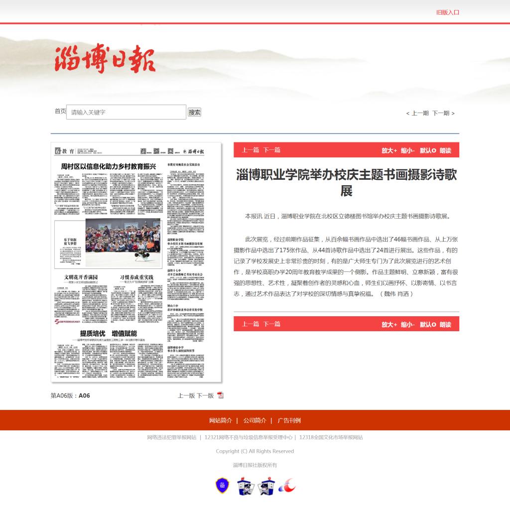 本报讯 近日,淄博职业学院在北校区立德楼图书馆举办校庆主题书画摄影诗歌展。