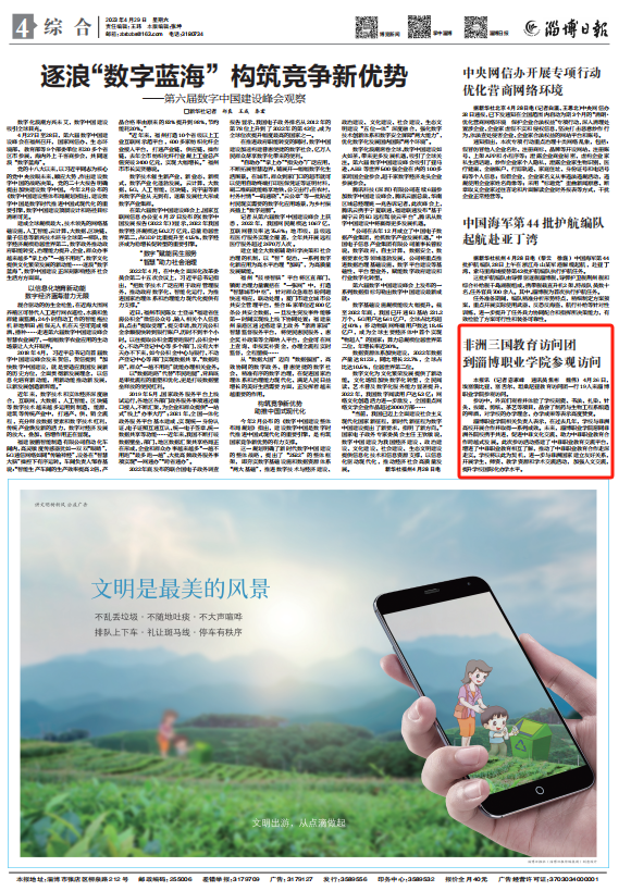 本报讯(记者 宓家峰 通讯员 焦彬 魏伟)4月26日,埃塞俄比亚、塞舌尔、坦桑尼亚教育访问团一行19人来淄博职业学院参观访问。