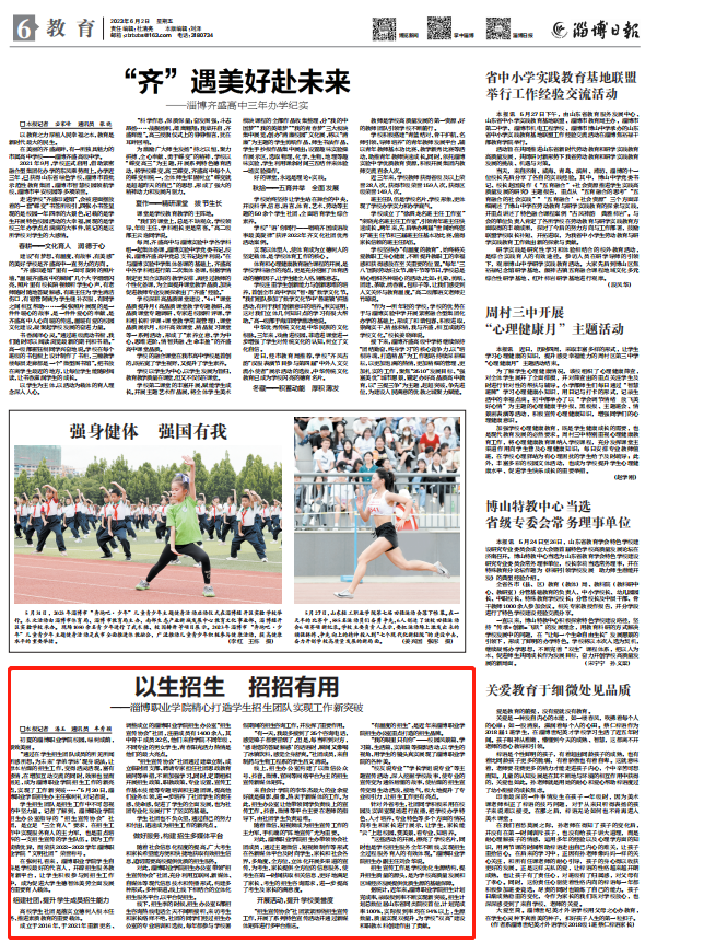 “通过在学生招生团队成员的所见所闻所感所想,为未来‘学弟学妹’现身说法,让原本枯燥的招生工作,变得活灵活现,富有感情,在增加互动交流的同时,效果也显而易见,成为淄博职业学院招生工作的新亮点,实现了工作新突破……”5月30日,淄博职业学院招生办主任张树礼对记者说。