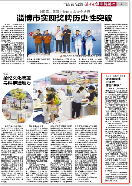 在中秋佳节来临之际,为了让外国留学生在淄博感受中国节日气氛,帮助他们了解中国文化传统及风俗习惯,周村区青年路街道凤鸣社区邀请淄博职业学院的外国留学生参加“月满中华 美传天下”传统文化体验活动。