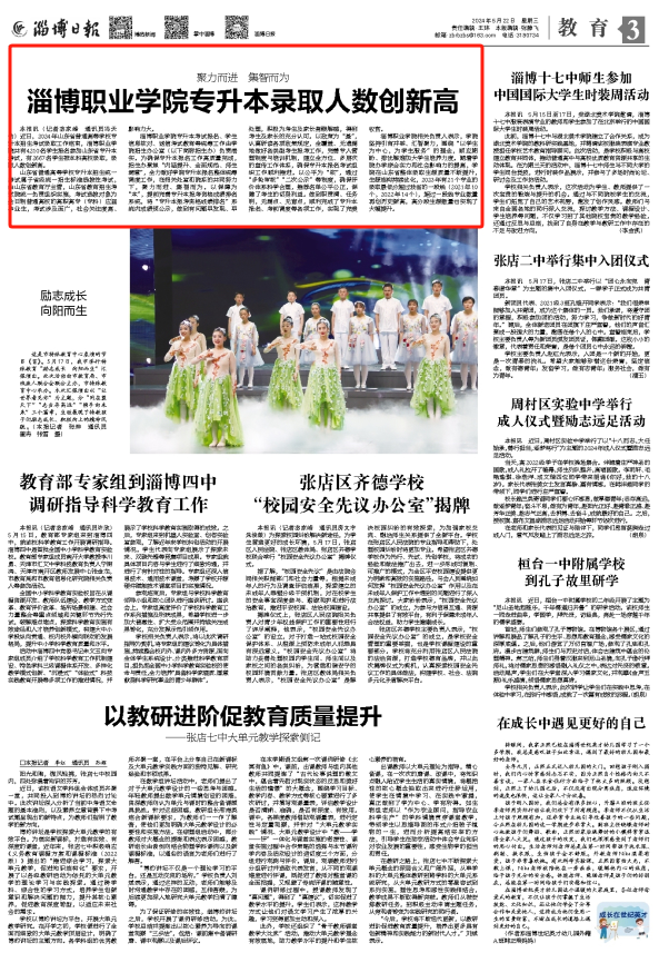 本报讯(记者 宓家峰 通讯员 冯天佑)近日,2024年山东省普通高等学校专升本招生考试录取工作结束,淄博职业学院共有4210名学生报名参加山东省专升本考试,有2667名学生被本科高校录取,录取人数创新高。