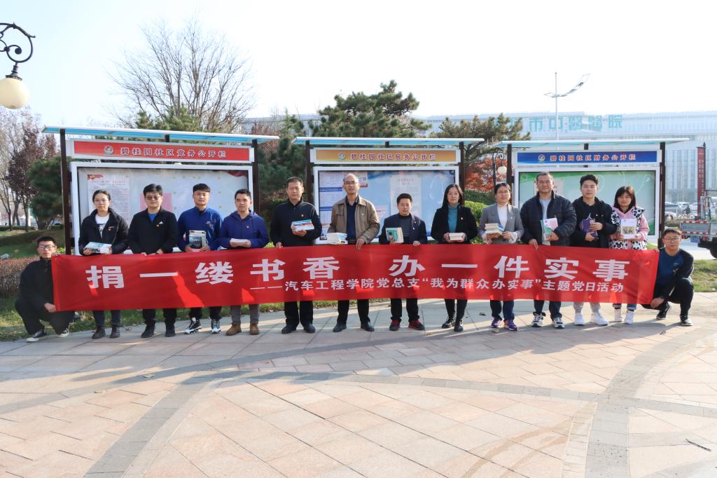 本站讯(通讯员 王国玲)为扎实推进党史学习教育,深入开展“我为群众办实事”实践活动,11月18日,汽车工程学院党总支党员教师、入党积极分子前往“双报到”地点—周村碧桂园社区开展“捐一缕书香,办一件实事”主题党日活动。