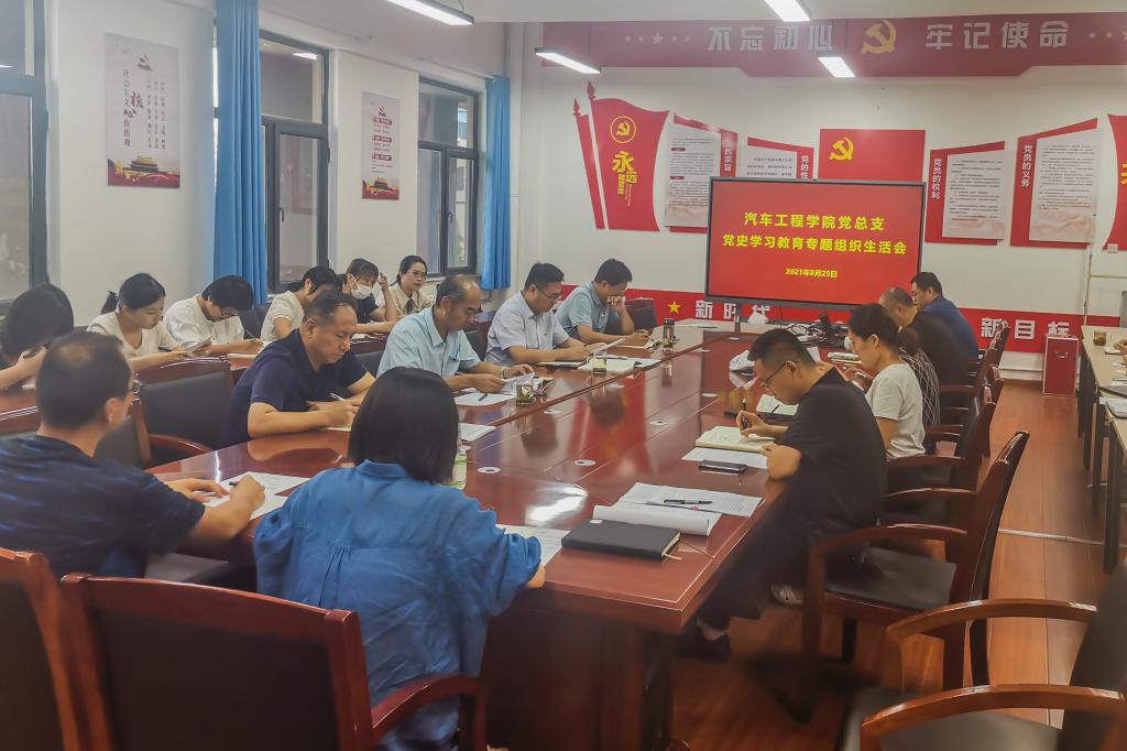 本站讯 (通讯员 王国玲)8月25日下午,汽车工程学院党总支在北校区4号楼316会议室召开党史学习教育专题组织生活会,学院党委委员、宣传统战部部长张成山参加并讲话。会议由该院党总支副书记李学祥主持,全体党员参加。