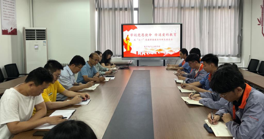 本站讯(通讯员 赵忆昕)为庆祝中国共产党成立102周年,进一步激发师生爱党爱国热情,充分发挥党员先锋模范作用,6月29日下午,电子电气工程学院在匠心楼314会议室开展主题为“牢记党恩使命,传递爱的教育”庆“七一”青年师生座谈会。党总支书记康成杰、院长白坤海、青年教师、学生代表等20人参加座谈。