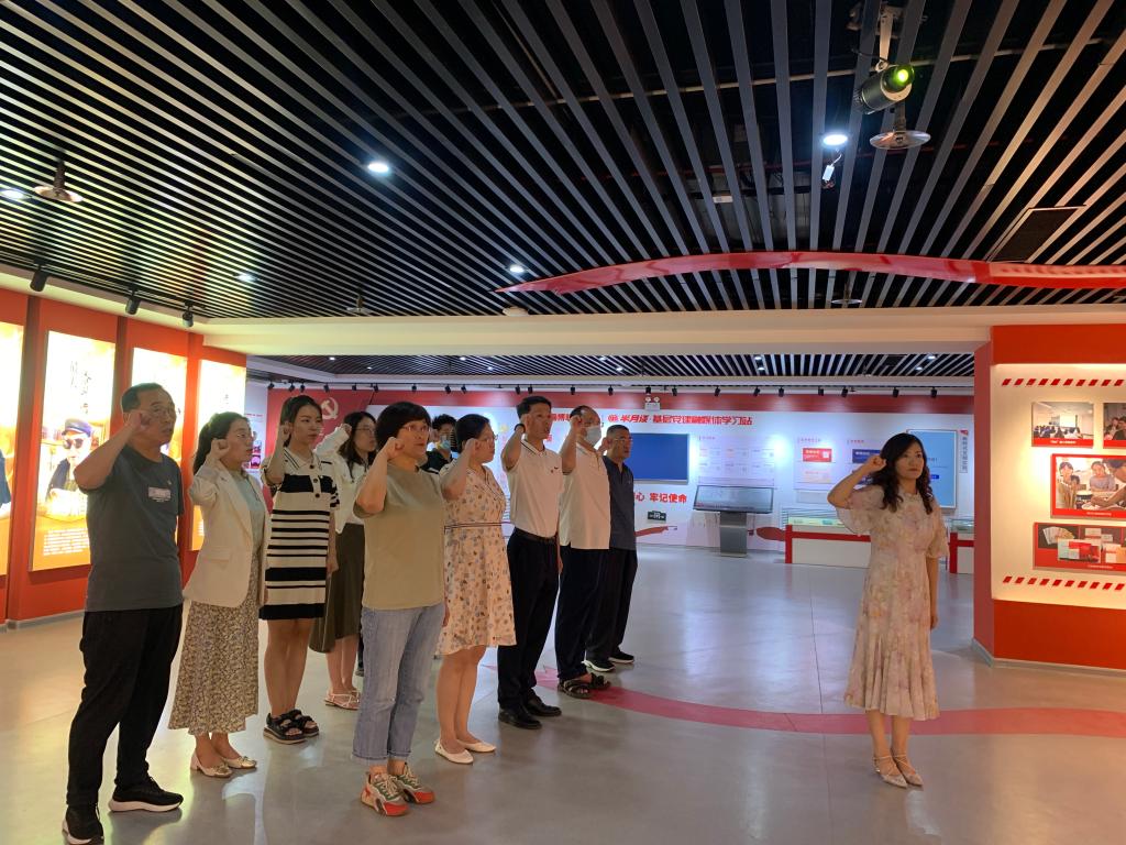 活动中,在工作人员的引导下,医学技术学院的党员同志们在初心馆有序进行参观,进一步了解了我党的光荣历史和革命历程,再一次感受到了中国共产党人为救国救民百折不挠、勇往直前的革命精神。参观结束后,青年党员教师郭庆洁和徐玉强在活动现场为广大党员上了一堂生动的微党课,引用我们身边的模范事迹教育和引导广大党员立足本职工作,勇于开拓进取,干事创业,牺牲奉献。活动最后,党总支副书记带领党员们在党旗下高举右拳,庄严宣誓,重温入党誓词,牢记初心使命。