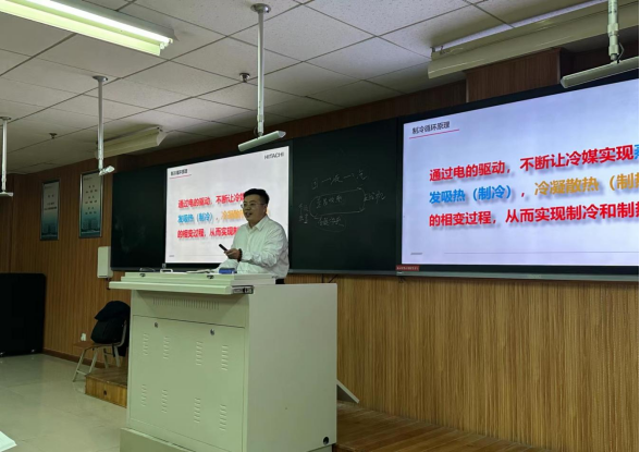 为帮助同学们在专业知识里探索创新,我们组织部分同学前往我市知名空调厂家,参观空调设备生产过程,当课本上抽象拗口的部件呈现在同学们面前时,当同学们提出一个个看似深奥的原理问题,当看到他们认真的记录企业技术人员讲解的内容时,我深深地感受到了他们已经完全掌握了这个体系,确信他们对空调系统有了全面深入的理解,对各个组件的原理稔熟于心,这样的学习体验同学们又怎么会不产生兴趣呢?