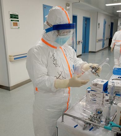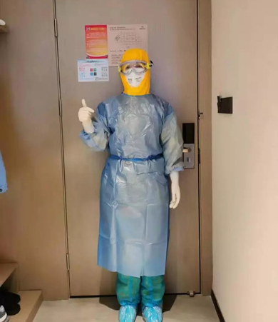 2月7日晚上,董琳工作没多久就感觉头晕恶心得厉害,最后发现是因为护目镜紧紧压住眼眶导致的,可是又不能用手去调整,只好使劲挤眼睛,尽量让眼镜动一动,一直坚持到换班。