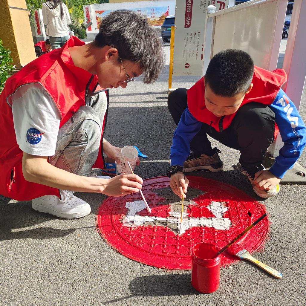 志愿者们一早就进入社区,帮助社区清理卫生垃圾,打扫社区井盖卫生。清扫完后,志愿者们拿出准备好的各式各样的画笔、五颜六色的颜料,给社区里的井盖开展美化活动,以文明城市创建为主题,先打样,再描边涂色,以井盖为“画纸”,创作了一幅幅具有美好寓意的图画,让社区的井盖变成了“景”盖。井盖,一个社区里平平无奇的东西,经过志愿者们的美化,不仅很好地提醒了行人注意安全,也让小区充满了温馨靓丽的色彩。