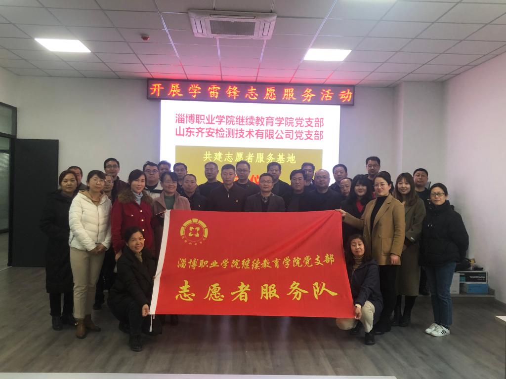 本站讯 (通讯员 巩绪福)3月4日下午,继续教育学院党支部与山东齐安检测技术有限公司党支部(淄博职业学院应急管理学院)在学院南校区共建志愿者服务基地,并共同开展了学雷锋志愿服务活动。