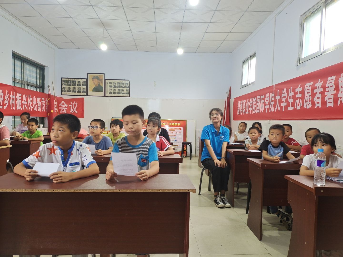 活动前期师生共同研讨,确定课程设置和授课内容,开设了趣味英语、韩语小课堂、礼仪与形体等体现国际学院专业特色的课程,同时结合学生需求,开设了国学课堂、神奇数学、创意手工、少儿美术等基础课程,除此之外,结合党史学习教育及假期安全教育要求,开设了党史故事小课堂、红色歌曲、防溺水教育主题班会等内容,将志愿服务与公益课堂结合起来,圆孩子五彩斑斓的梦想。支教之余,志愿者们深入群众,分发调查问卷,了解当地“空巢老人”、“留守儿童”的生活现状、听取他们对大学生社会实践活动开展形式和内容的需求及建议,并形成调研报告。中国共产党成立100周年之际,党史学习教育深入开展过程中,志愿者们到大街小巷分发党史学习教育宣传手册,并向学生及家长进行党史教育主题宣讲,真正将党史学习教育与美丽乡村建设相结合。