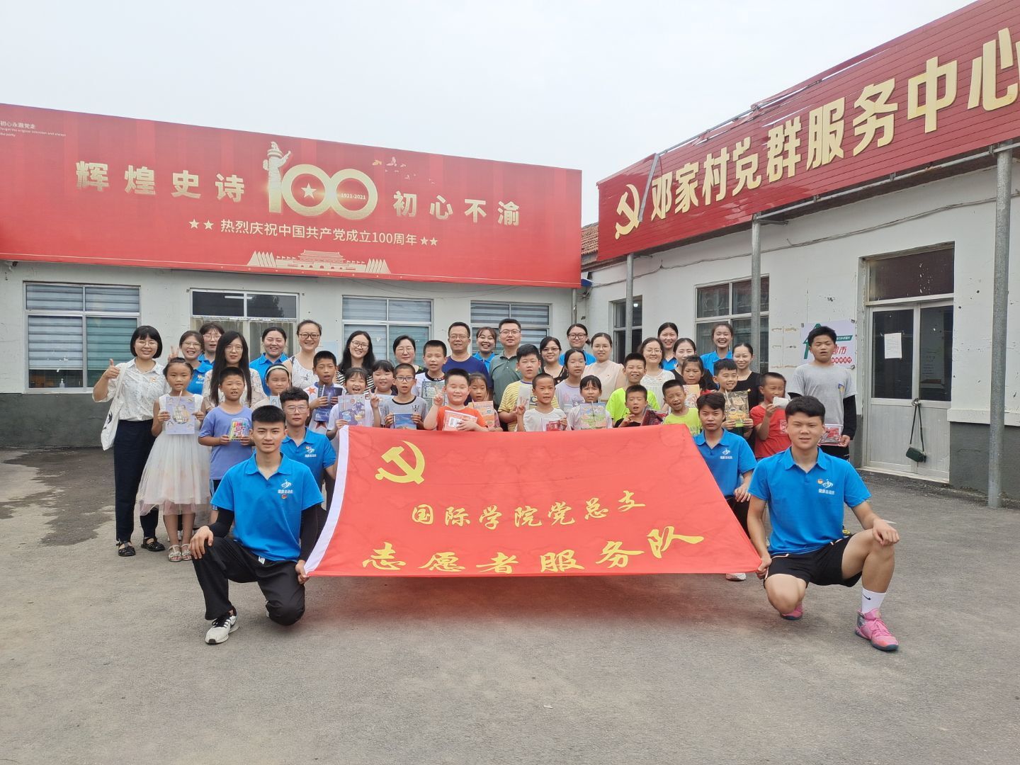 国际学院党总支党员教师们结合“小我融入大我青春献给祖国”党史学习教育实践活动,深入基层扎根一线,积极参与到暑期“三下乡”社会实践活动中,本次活动锻炼了大学生们吃苦耐劳的品质,也提升了他们的综合素质和专业技能,进一步增强了师生对自身所肩负的时代责任的深刻认识。邓家村社会实践基地的建立,为国际学院党总支提供了一个常态化开展志愿服务活动的阵地与平台,有利于引导师生切实服务乡村振兴建设,把学习奋斗的具体目标同乡村振兴的伟大目标结合起来,用实际行动诠释当代青年的责任与担当,不负时代,不负韶华,不负党和人民的殷切期望。