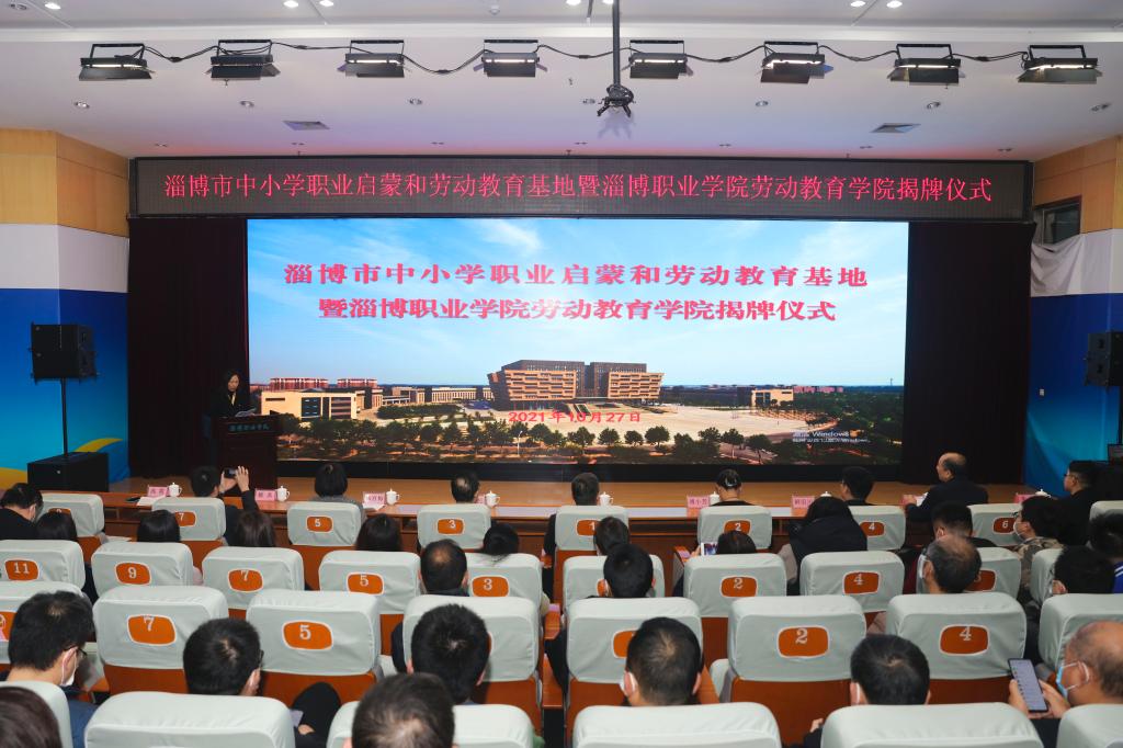 本站讯(通讯员 张晗)10月27日上午,淄博市中小学职业启蒙和劳动教育基地暨淄博职业学院劳动教育学院揭牌仪式在申搏立德楼报告厅举行。苏州职业大学劳动与职业教育研究所所长傅小芳教授,市教育局党组成员、市教研室党总支书记李铮声,山东众乐教育科技有限公司董事长解佰川、专家委员会主任解典,学校党委书记张爱民,党委副书记、校长杨百梅等出席了此次活动。